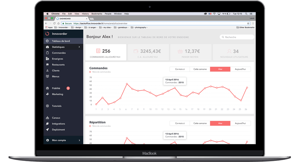 Pilotez votre activité comme jamais auparavant grace à votre tableau de bord regroupant une vision globale de votre restaurent en un clic.